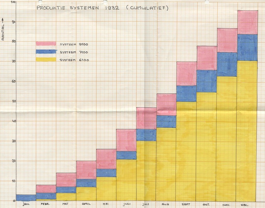 Hiernaast zijn de verkoopcijfers (cumulatief) van 1982 te zien. De 6100 is op dat moment